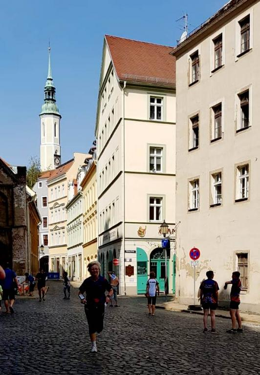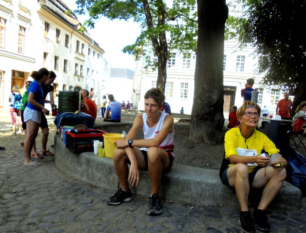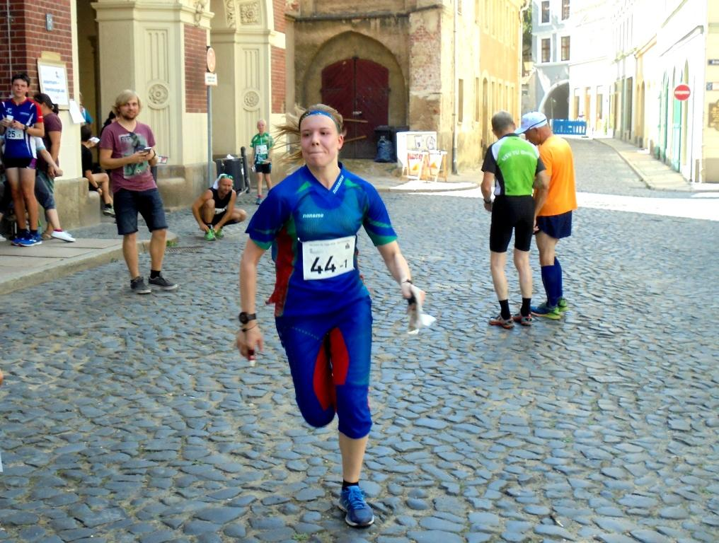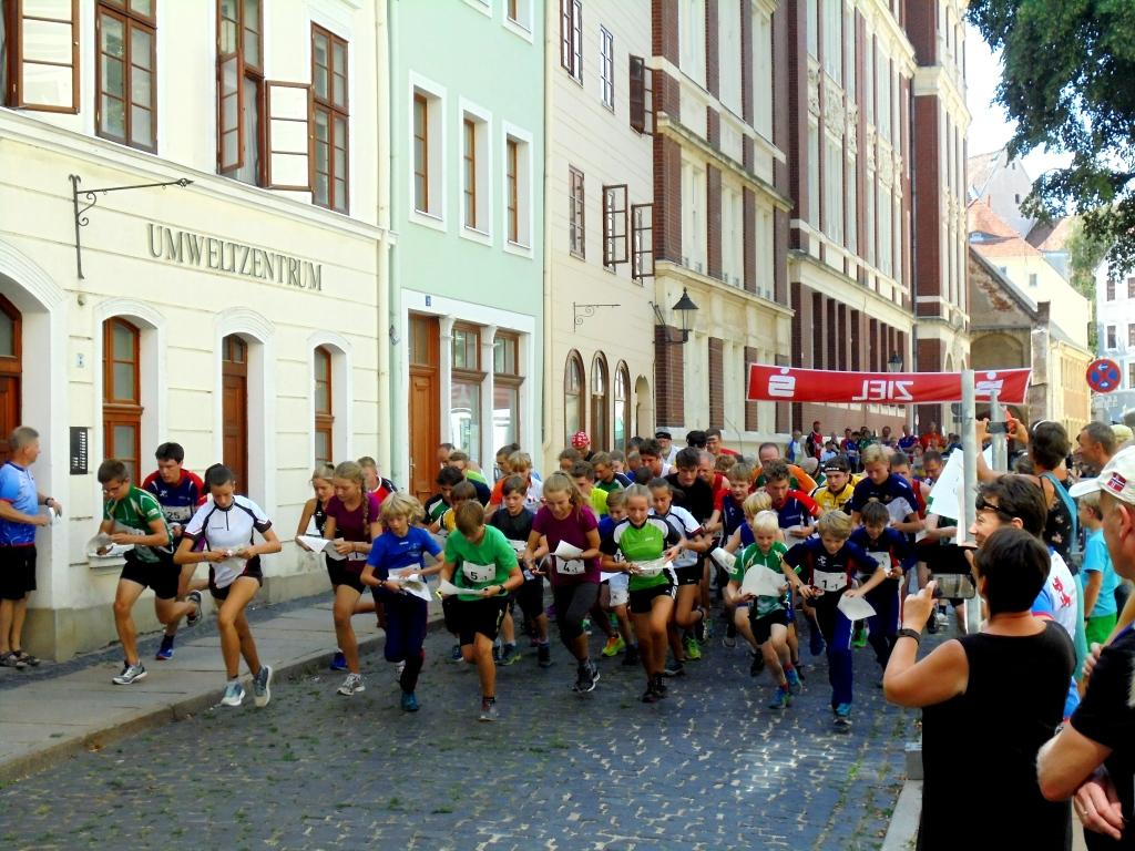 Lauf Nummer drei war die bereits oben erwähnte stimmungsvolle3-er Mixstaffel, die durchweg durch den historischen Stadtkern der Grenzstadt zu Polen mit fast unübersichtlichen Bahnführungen führte, die dann auch so manchen selbst erfahrenen Orientierer verwirrte. Im Hauptlauf kam für alle, einschließlich ihm selbst, der Startläufer des Berliner TSC, Krystian Petersburski als zweiter zum Wechsel, den – noch erstaunlicher – auch der an zweiter Position gestartete H 50´ziger Urs Trösch noch halten konnte, was doch zu etwas Nervosität der vielen sächsischen Konkurrenzteams führte. Leider konnte die an dritter Position startende Anke Templiner (D 45) diesen Platz dann nicht halten und verlor – sicherlich durch diesen ungewohnten vorderen Platz bedingt – zwischenzeitlich den „Faden“ und kam als 11. Vor dem „Familienteam“ des Kaulsdorfer OLV in der Reihenfolge Henriette – Kirsten-Bernd ins Ziel. Auf Platz 6 hatte sich derweil die Berliner Turnerschaft (Claudia Becker – Ronny Krüger – Anico Kulow) gesetzt, die sich mit 44 Sekunden vor dem 8. Team der TU Dresden noch absetzen konnte.